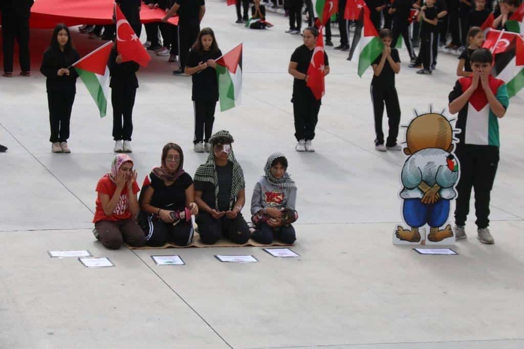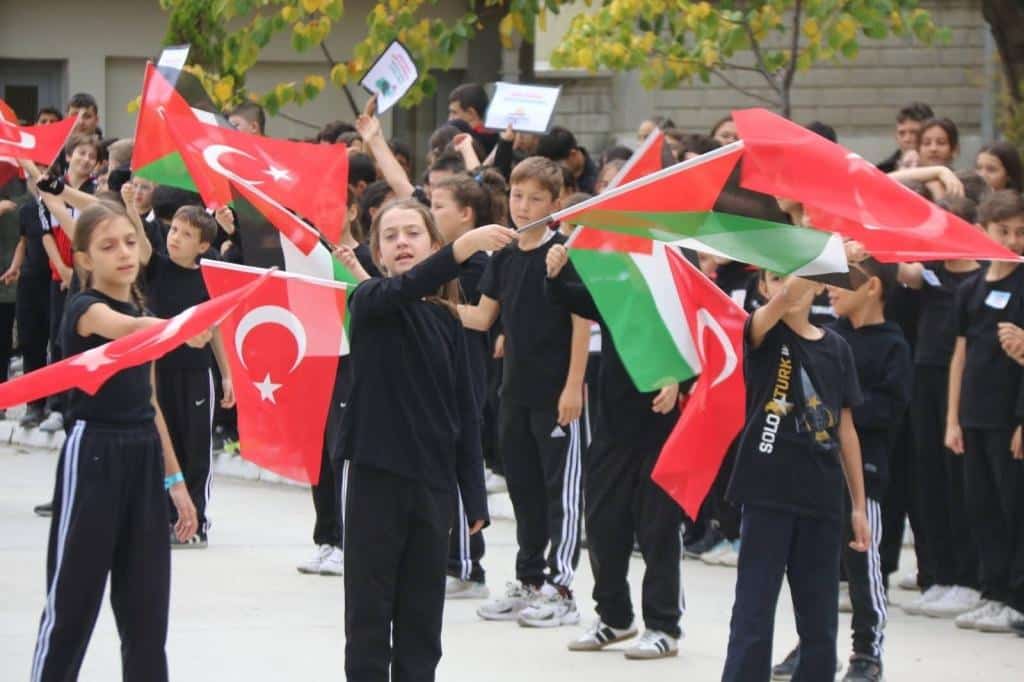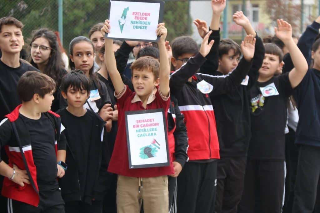 Etkinliklerde öğrencilerimiz; Filistin’de yaşanan acılara dikkat çekerek, kardeşlik ve dayanışma mesajları verdiler. Öğretmenlerimizin rehberliğinde gerçekleştirilen bu etkinliklerle, çocuklarımızda evrensel değerlerin ve insanlık onurunun önemi bir kez daha vurgulandı.
